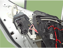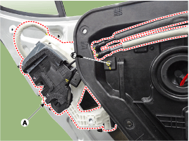 Ослабьте крепежный болт и снимите защелку задней двери (А).