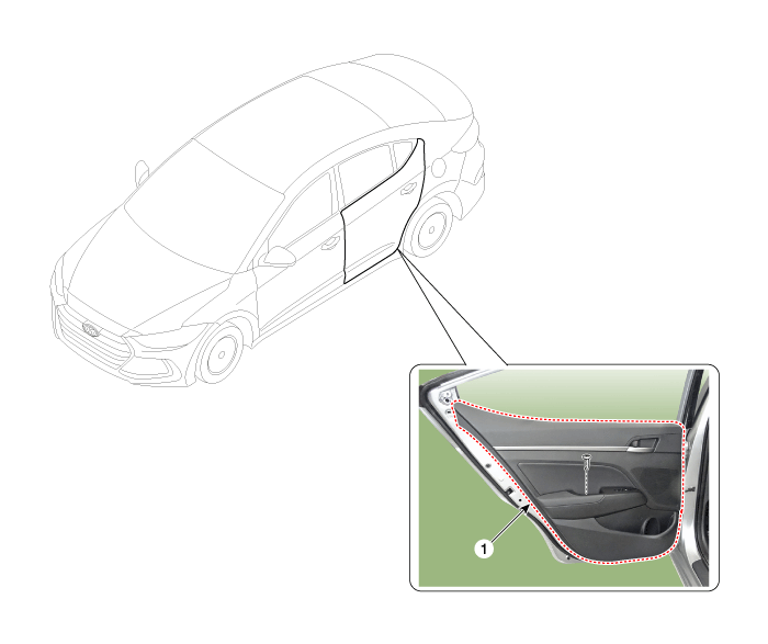 Hyundai Elantra: Компоненты задней двери / обшивки задней двери и расположение компонентов
