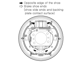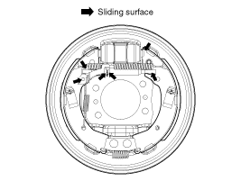 Нанесите смазку для тормозных цилиндров или аналогичную смазку для резины на показанные поверхности скольжения. Не допускайте попадания смазки на тормозные колодки.