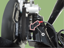 Отсоедините разъем датчика скорости заднего колеса (А).
