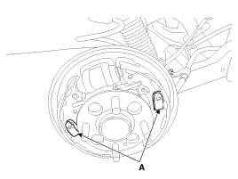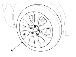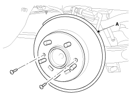 Снимите заднее колесо и шину (А) с передней ступицы.