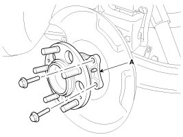 Ослабьте болт крепления ступицы и снимите ступицу (А) с торсионной балки.