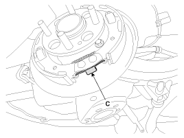Отсоедините отрицательный (-) кабель аккумуляторной батареи.