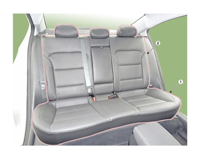 Hyundai Elantra: Заднее сиденье / Компоненты заднего сиденья в сборе и расположение компонентов