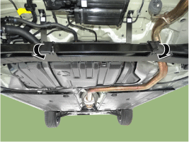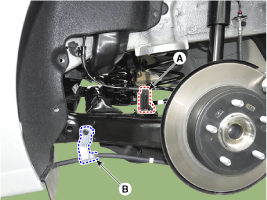 Ослабьте крепежный болт и снимите кронштейн троса датчика скорости колеса (А) и кронштейн троса стояночного тормоза (В).