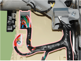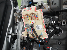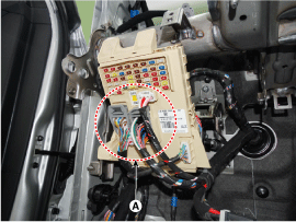 Отсоедините разъемы (A) со стороны предохранителей SJB.