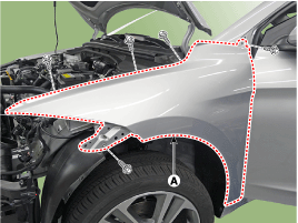 Ослабив крепежные болты, снимите крыло в сборе (А).