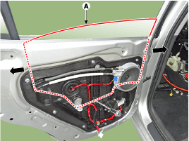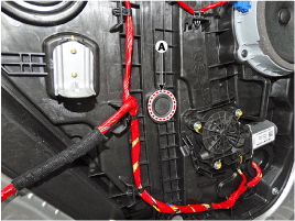 Отделите отверстие монтажной заглушки (А) от модуля задней двери.