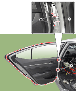Компоненты обивки задней двери и расположение компонентов