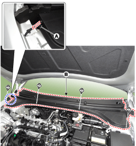 Отсоедините зажимы, затем снимите верхнюю крышку кожуха (B).