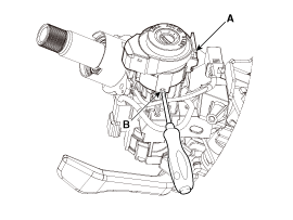 Отсоедините разъем выключателя зажигания (А) и разъем выключателя сигнализации о ключе (В) из-под рулевой колонки.