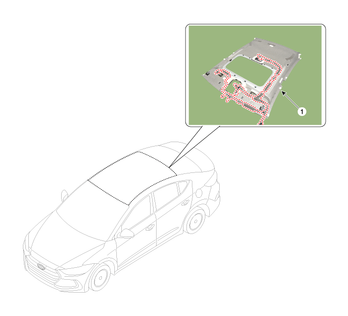 Hyundai Elantra AD (2016-2020) Руководство по ремонту / Кузов (внутри и снаружи) / Отделка крыши / Компоненты сборки обшивки крыши и расположение компонентов