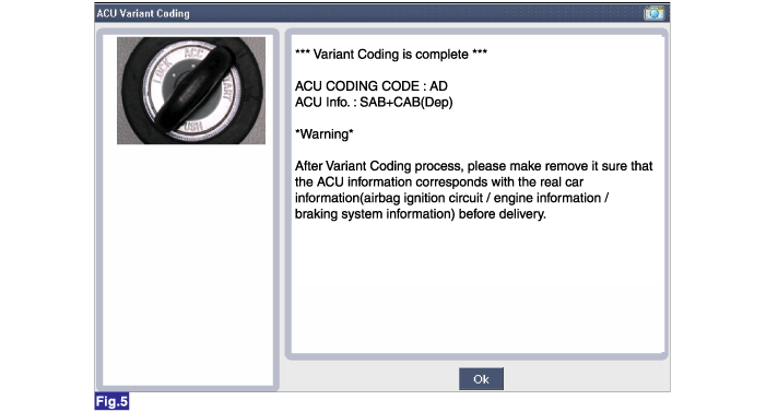 В случае неудачного варианта кодирования будет отображаться DTC B176200 (ошибка кодирования ACU) и загорится контрольная лампа.