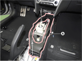 Снимите канал центральной консоли (А) после ослабления крепежной гайки.