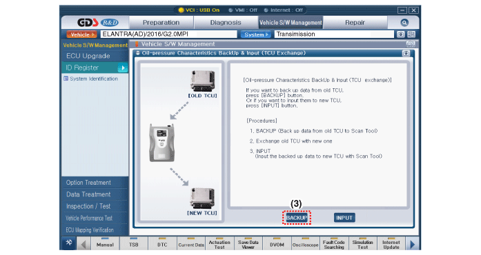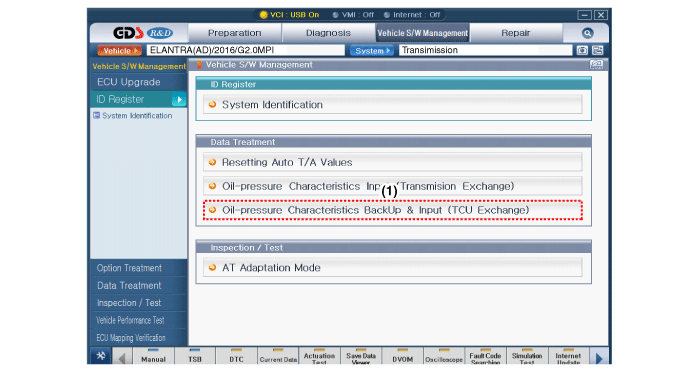 Ввод характеристик давления масла (обмен TCM)