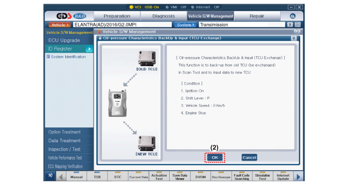 Выполните обучение TCM после замены коробки передач, чтобы предотвратить медленную реакцию коробки передач, рывки при ускорении и рывках при запуске.