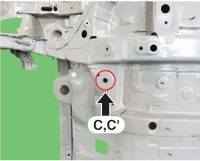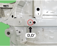 Отверстие для инструмента переднего удлинителя заднего лонжерона (O25)