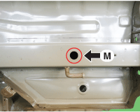Отверстие для инструмента в центре поперечного удлинителя заднего пола (O8)