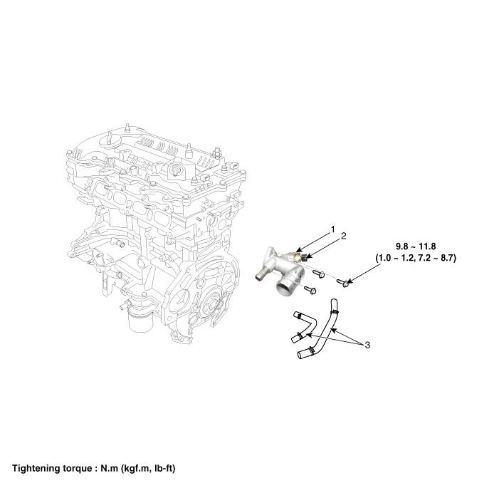 Hyundai Elantra AD (2016-2020) Руководство по ремонту / Механическая система двигателя / Система охлаждения / Компоненты узла контроля температуры воды и расположение компонентов