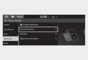 2. Зарегистрируйте свой цифровой ключ на меню настроек пользователя транспортного средства следующим образом.