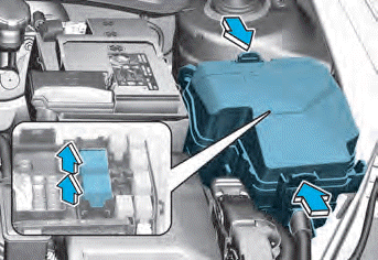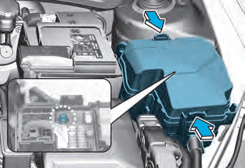 После проверки блока предохранителей в моторный отсек надежно закрыт крышка блока предохранителей внутри двигателя отсек до щелчка.