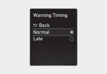 При включенном двигателе выберите «Водитель Помощь → Время предупреждения» из Меню настроек для изменения начального время активации предупреждения для Blind-Spot Система безопасности.