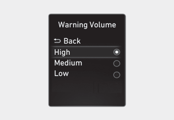 Если двигатель перезапускается, время предупреждения Громкость предупреждения будет поддерживать последняя настройка.