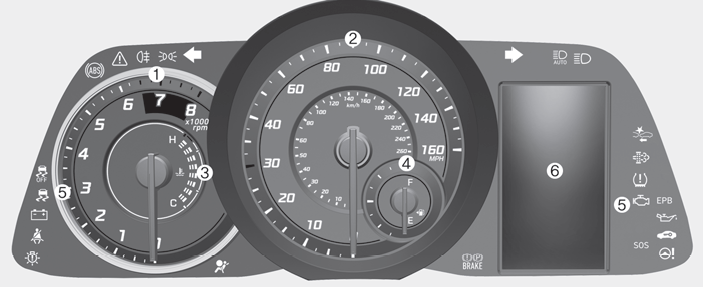 3. Указатель температуры охлаждающей жидкости двигателя.