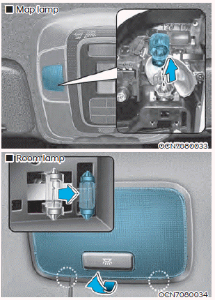 Hyundai Elantra: Замена ламп накаливания / Замена ламп в салоне