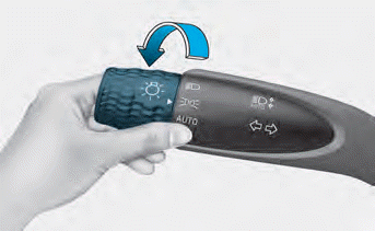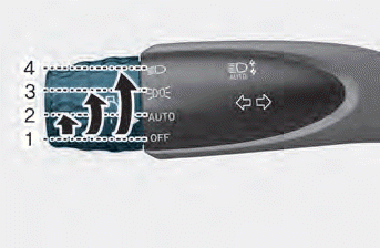 Для включения освещения поверните ручку в конец рычага управления к одному из следующие позиции: