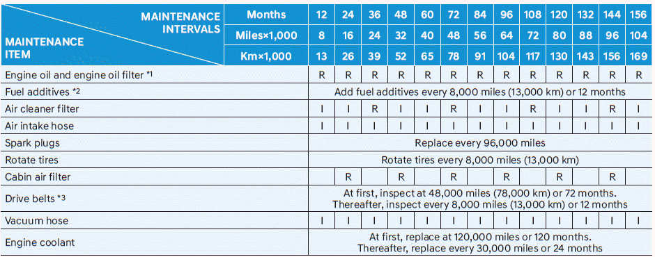 Следуйте обычному графику технического обслуживания, если автомобиль обычно эксплуатируется в