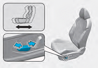 Переднее сиденье можно отрегулировать с помощью переключателей управления, расположенных на снаружи подушки сиденья. Перед вождения, отрегулируйте сиденье в правильном положение так, чтобы вы могли легко контролировать руль, педали и органы управления на панели приборов.