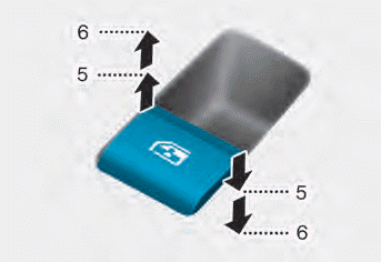 Нажатие переключателя электрического стеклоподъемника вниз на мгновение до второго положение фиксации (6) полностью опускается окно, даже если выключатель выпущенный. Чтобы остановить окно в желаемое положение, пока окно находится в работы, потяните вверх или нажмите вниз и отпустите переключатель.