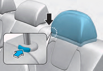 2. Опустите задние подголовники до самое нижнее положение, нажав и удерживая спусковую кнопку и нажимая на подголовник.