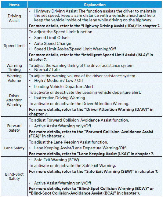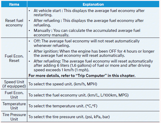 Для использования меню сервисных интервалов обратитесь к авторизованному дилеру HYUNDAI.
