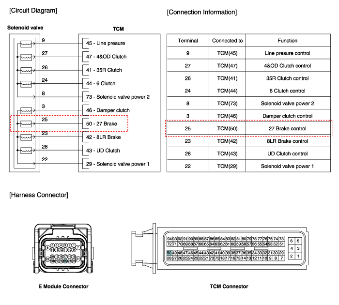 Hyundai Genesis: система управления автоматической коробкой передач / 27 принципиальных схем электромагнитного клапана управления тормозами