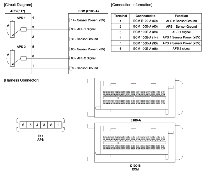 Hyundai Genesis: схематические схемы системы управления двигателем / датчика положения акселератора (APS)