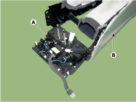 Снимите лоток мультимедийного разъема (A) после ослабления винтов на напольной консоли (B).