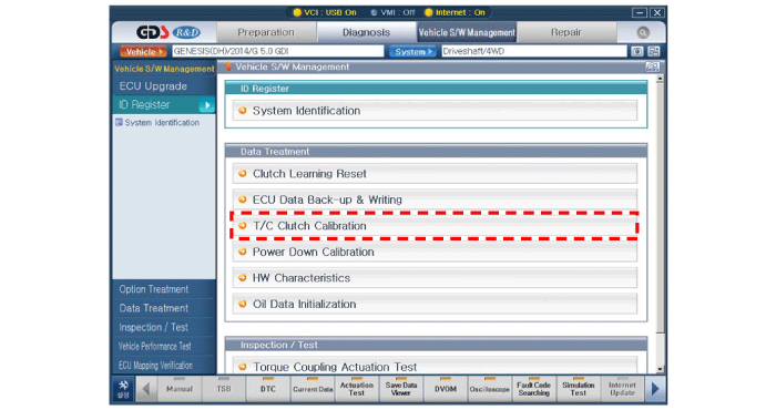 Выполните первоначальную калибровку, выберите услугу «Калибровка сцепления T/C» GDS.