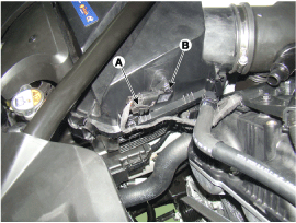 Выверните установочный болт (В) и снимите датчик с узла воздушного фильтра.