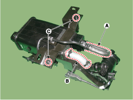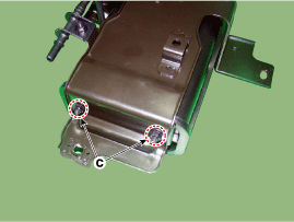 Снимите канистру с протектора, ослабив крепежную гайку (С).