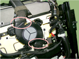 Снимите ТЭД (А) после отсоединения разъема и ослабления винта на спинке сиденья.
