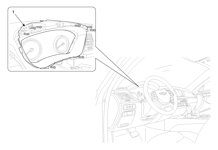 Hyundai Genesis (DH) 2013-2016 Руководство по ремонту / Кузов (внутри и снаружи) / Аварийная площадка / Кластерная лицевая панель Компоненты и расположение компонентов