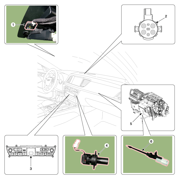 Hyundai Genesis: система кондиционирования воздуха / Компоненты и расположение компонентов