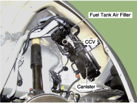 Поиск неисправностей СимптомПодозреваемая областьДвигатель не запускается или запускается с трудомПоврежден или отсоединен паровой шлангEДвигатель с трудом запускаетсяНеисправность электромагнитного клапана управления продувкойГрубый холостой ход