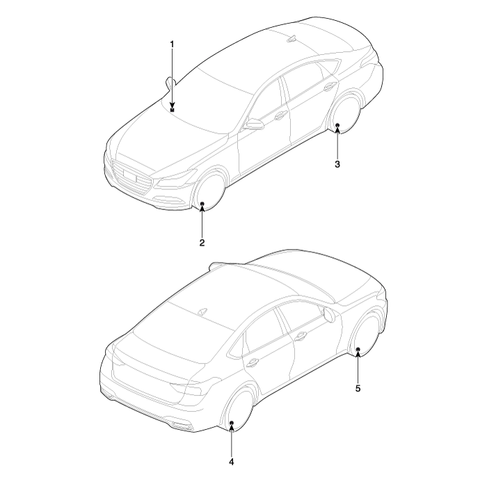 Hyundai Genesis: система контроля давления в шинах / Расположение компонентов и компонентов