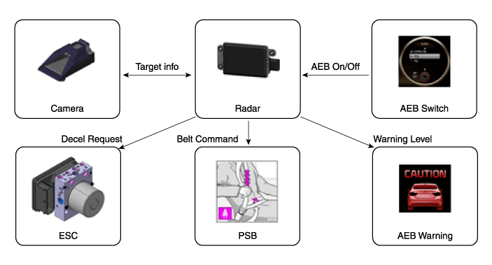 Hyundai Genesis: Система автономного экстренного торможения (AEB) / Компоненты и расположение компонентов