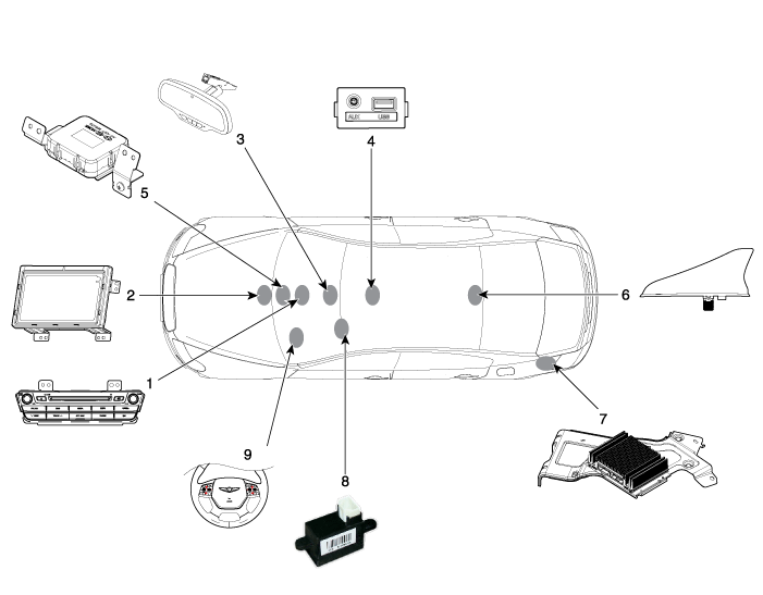 Hyundai Genesis: система AVN / Компоненты и расположение компонентов