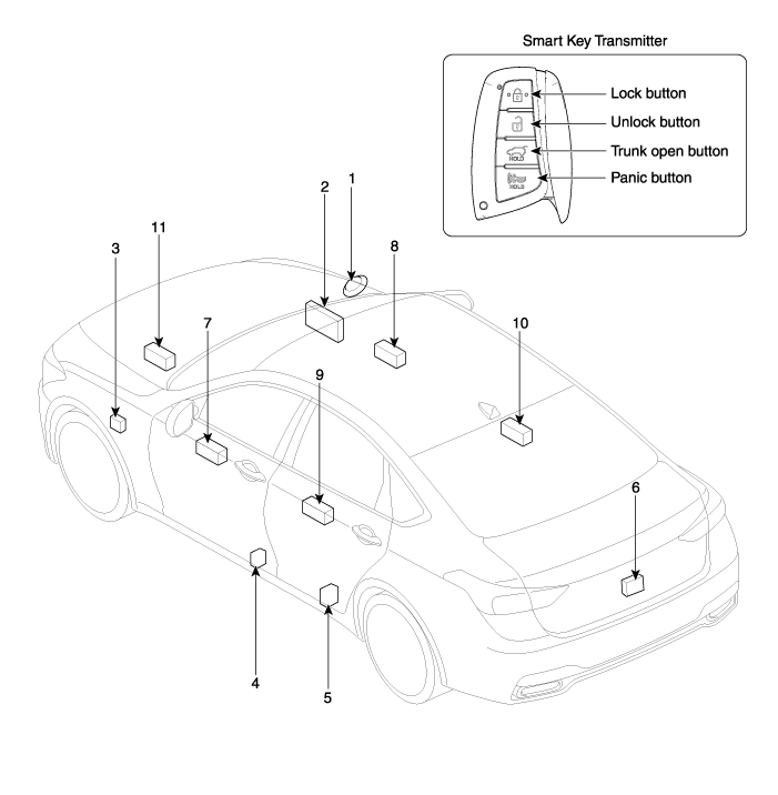 Hyundai Genesis: бесключевой доступ и охранная сигнализация / Расположение компонентов и компонентов