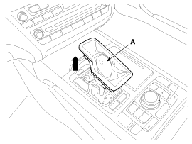 Снимите ручку переключения передач и пыльники (А), потянув их вертикально.